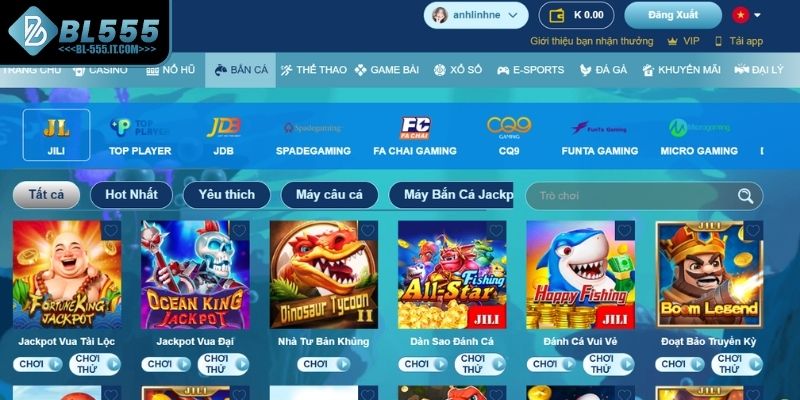 Bắn cá BL555 không chỉ là một sảnh trò chơi, mà còn là một hệ sinh thái cá cược đa dạng với những sảnh game chất lượng đỉnh cao. Sự hợp tác chặt chẽ với các nhà phát hành uy tín đã giúp sảnh cược này luôn cập nhật những phiên bản mới nhất, mang đến trải nghiệm thú vị và không ngừng mới mẻ cho người chơi. Dưới đây là một số sảnh cược nổi bật mà bạn tuyệt đối không thể bỏ qua: